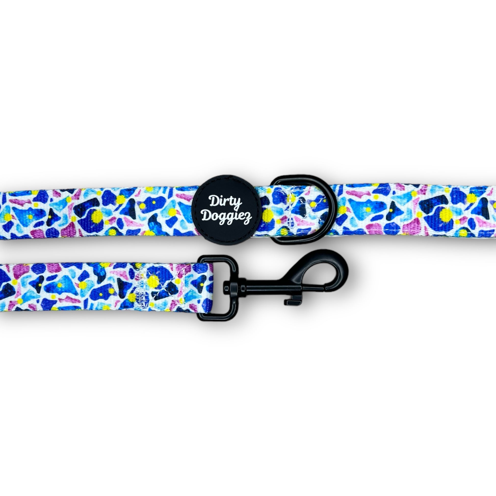 Upgrade your walking game with our Scattered Bright Leash. Its neoprene padded handle provides extra comfort, while the strong webbing and heavy-duty clip ensure a secure hold. Add some style with our unique print - who says practical can't be stylish?!