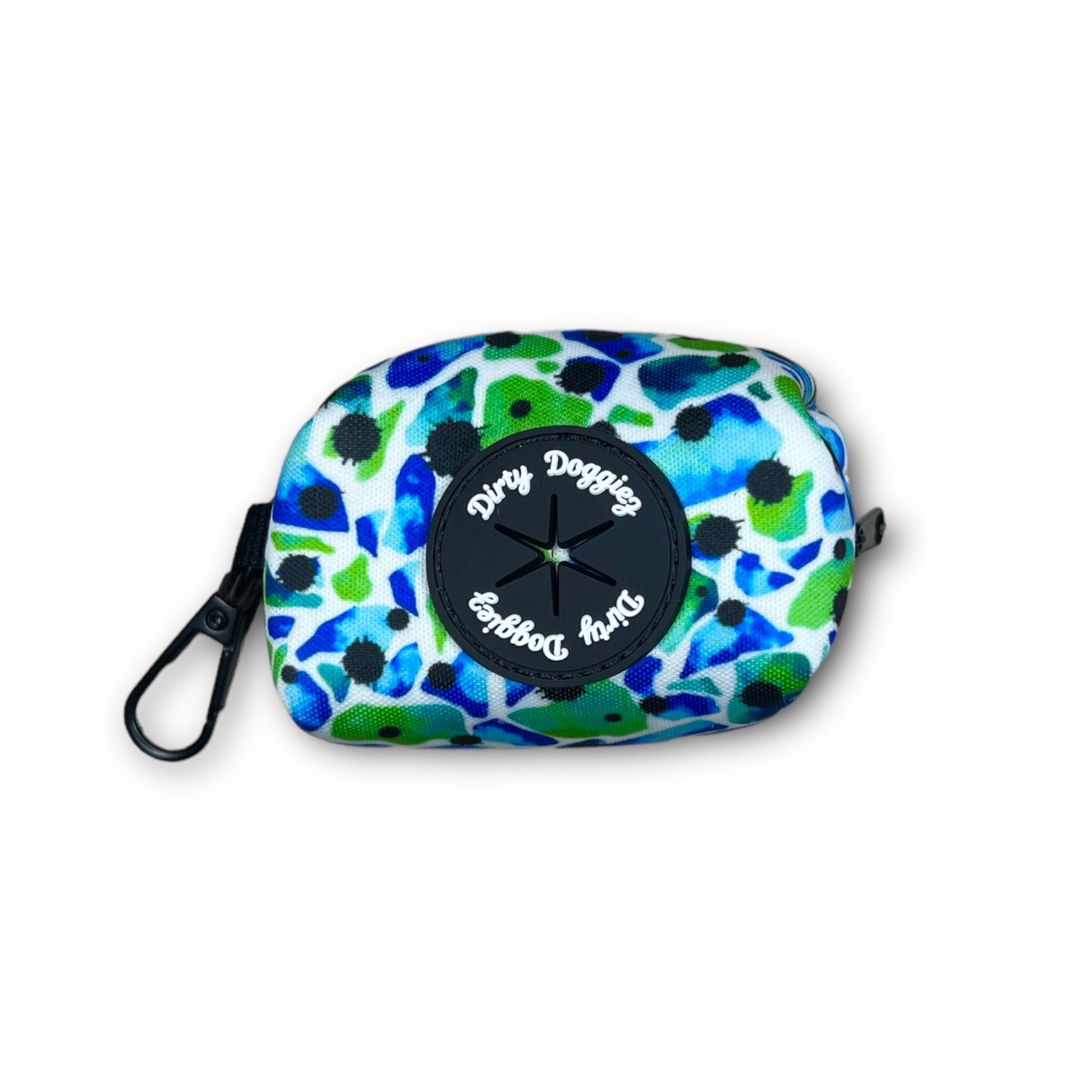 Introducing the Scattered Green Poop Bag Holder - the soft and durable accessory that makes pet waste clean-up easy and convenient! With quick bag access and the ability to easily attach to any dog leash, this holder is a must-have for pet owners. Say goodbye to messy walks!